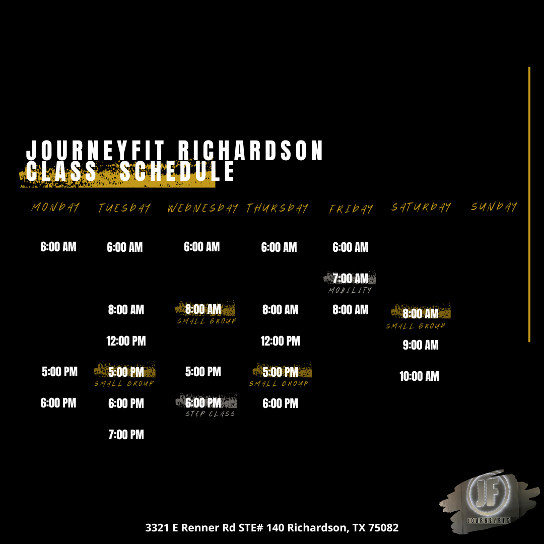 JOURNEYFIT CLASS SCHEDULE ALL LOCATIONS